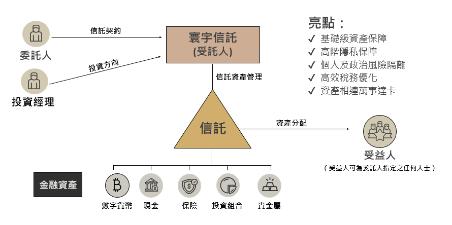 - 隱私保護:寰宇信託的信託服務提供高度的隱私保護,確保家族財務信息得到保密。